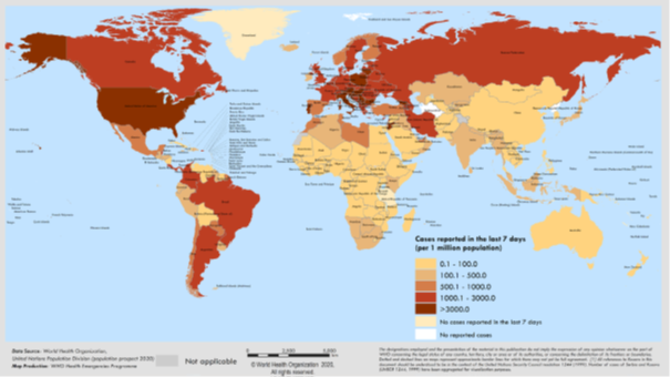 Geçen hafta, küresel vaka insidansı yaklaşık 4 milyon yeni vaka ile yüksek kalmış, ancak hafif bir düşüş eğilimi gözlemlenmiştir . Bununla birlikte haftalık ölümler, artmaya devam etmiştir.