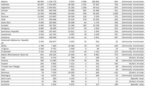 Meksika'da geçen hafta, bir önceki haftaya göre %2'lik bir artış ve pandeminin başlangıcından bu yana görülen en yüksek haftalık vaka sayısı olan 66.095 yeni vaka (1 milyon nüfus başına 513 vaka) rapor edilmiştir. Önceki haftaya benzer seviyelerde olan 3990 yeni ölüm bildirilmiştir. Hükümet, vatandaşları evde kalmaya çağırmakta ve tatil sezonu öncesinde hastane yatakları, tıbbi donanım eklemeyi ve doktor ve hemşire sayısını artırmayı planlamaktadır.