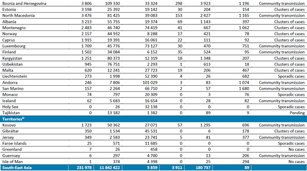 Tablo 2. Ülkelere ve bölgelere göre son yedi günde bildirilen doğrulanmış COVID-19 vakalarının ve COVID-19 kaynaklı ölümlerin sayısı, 27 Aralık 2020 verileri **