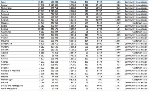 En çok ölüm vakası bildiren ülkeler; Birleşik Krallık (8242 yeni ölüm; 100.000 başına 12.1 yeni ölüm,% 6 azalma), Almanya (5075 yeni ölüm; 100.000 başına 6.1 yeni ölüm,% 7 azalma) ve Rusya Federasyonu (3720 yeni ölüm; 100.000'de 2,5 yeni ölüm,% 5 azalma) olmuştur.