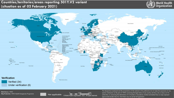 VOC2012 / 01 ve 501Y.V2'nin dolaşımda olduğu bazı ülkelerde SARS-CoV-2 insidansı ve hastaneye yatışlarda, son haftalarda bir düşüş başlamıştır ve bu da, bu varyantların bulaşmasını kontrol altına almak için halk sağlığı ve sosyal önlemlerin ne kadar etkili olduğunu göstermektedir.