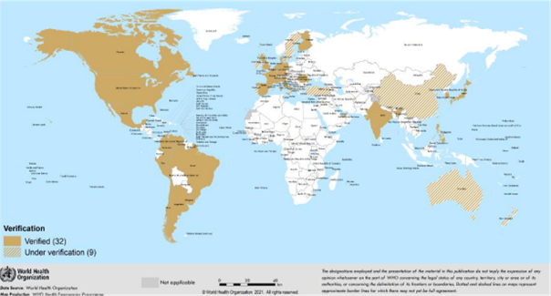 - (Aktif) vaka yok: Sağlam bir sürveyans sistemi varlığında en az 28 gün (maksimum inkübasyon süresinin iki katı) yeni vaka tespit edilmemiş olmasıdır. Genel nüfus için sıfıra yakın bir enfeksiyon riski vardır.