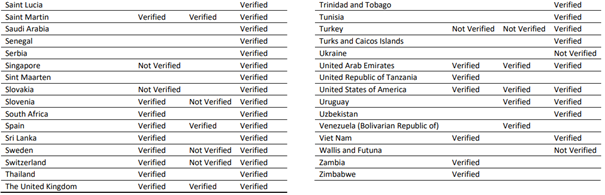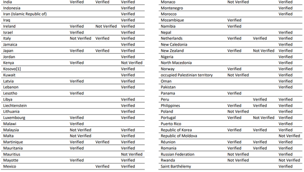i Doğrulanmış COVID-19 vakası (Ek 1) veya endişe verici varyantların tespit edildiği ülkeler ve bölgeler listesini (Ek 2) bildirmeyen ülkeleri, bölgeleri ve alanları hariç tutar.