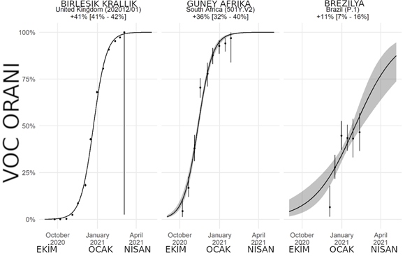 Endişe verici varyant-VOC bildiren ülke sayısı artmaya devam etmiştir .VOC 202012/01, 501Y.V2 ve P.1, vahşi tip (VOC olmayan) varyantlara kıyasla bulaşıcılıkta yaygın bir artış ve diğer dolaşımdaki suşların yerini hızla almakla ilgili olarak bir gerçeklik söz konusudur AstraZeneca, Moderna, Pfizer, Novavax ve Bharat aşıları da dahil olmak üzere, aşının neden olduğu VOC202012 / 01'e karşı nötralize edici antikor aktivitesi hakkında giderek artan sayıda kanıt vardır.