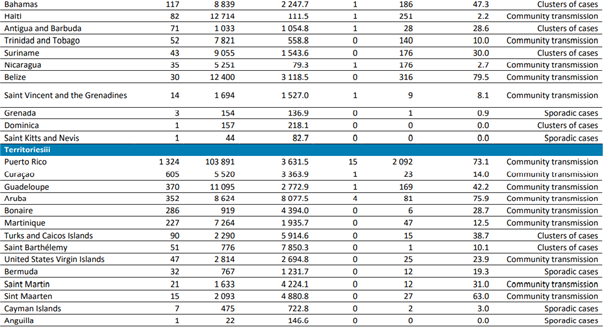 En çok ölüm vakalarının bildirildiği ülkeler yine; Brezilya (15.209 yeni ölüm; 100.000'de 7,2 yeni ölüm;% 23 artış), Amerika Birleşik Devletleri (7552 yeni ölüm; 100.000'de 2,3 yeni ölüm; % 19 azalma) ve Meksika (3368 yeni ölüm; 100.000'de 2,6 yeni ölüm;% 21 azalma) olmuştur.