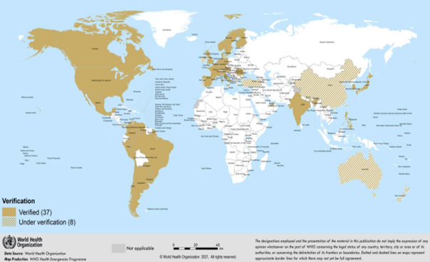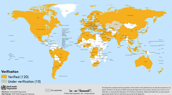 Aktif vaka yok: Sağlam bir sürveyans sistemi varlığında en az 28 gün (maksimum inkübasyon süresinin iki katı) yeni vaka tespit edilmemiş olmasıdır. Genel nüfus için sıfıra yakın bir enfeksiyon riski anlamına gelmektedir.