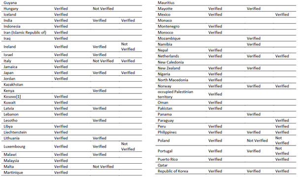 i Doğrulanmış COVID-19 vakası (Ek 1) veya endişe verici varyantların tespit edildiği ülkeler ve bölgeler listesini (Ek 2) bildirmeyen ülkeleri, bölgeleri ve alanları hariç tutar.