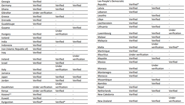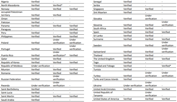 i Doğrulanmış COVID-19 vakası (Ek 1) veya endişe verici varyantların tespit edildiği ülkeler ve bölgeler listesini (Ek 2) bildirmeyen ülkeleri, bölgeleri ve alanları hariç tutar.