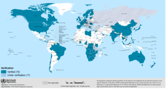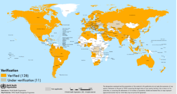 (Aktif) vaka yok: Sağlam bir sürveyans sistemi varlığında en az 28 gün (maksimum inkübasyon süresinin iki katı) yeni vaka tespit edilmemiş olmasıdır. Genel nüfus için sıfıra yakın bir enfeksiyon riski anlamına gelmektedir.