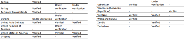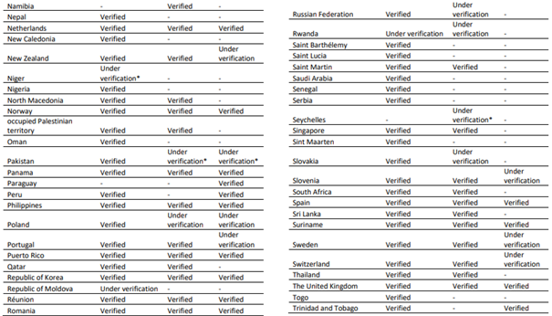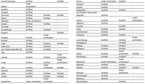 i Doğrulanmış COVID-19 vakası (Ek 1) veya endişe verici varyantların tespit edildiği ülkeler ve bölgeler listesini (Ek 2) bildirmeyen ülkeleri, bölgeleri ve alanları hariç tutar.