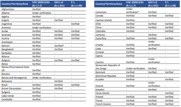 "Verified", bu varyant için bilgilerin DSÖ tarafından resmi kaynaklardan alındığını gösterir.