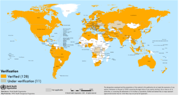 (Aktif) vaka yok: Sağlam bir sürveyans sistemi varlığında en az 28 gün (maksimum inkübasyon süresinin iki katı) yeni vaka tespit edilmemiş olmasıdır. Genel nüfus için sıfıra yakın bir enfeksiyon riski anlamına gelmektedir.