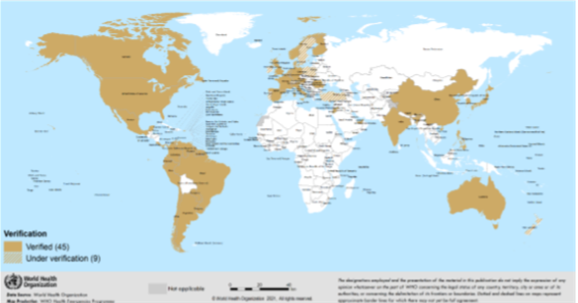 Şekil 3. 4 Mayıs 2021 itibarıyla SARS-CoV-2 VOC 202012/01 bildiren ülkeler, yönetim bölgeleri ve bölgeler
