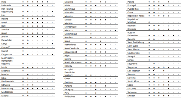 Şekil 4. 18 Mayıs 2021 itibarıyla SARS-CoV-2 B.1.351 Varyantını rapor eden ülkeler, yönetim bölgeleri ve bölgeler