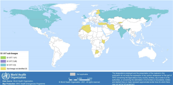 * Bu şekilde listelenen ülkeler / yönetim bölgeleri / bölgeler, doğrulama bekleyen B.1.617 varyantının tespitinin hem resmi hem de resmi olmayan raporlarını içerir. Ayrıntılar için lütfen Ek 2'ye bakınız.