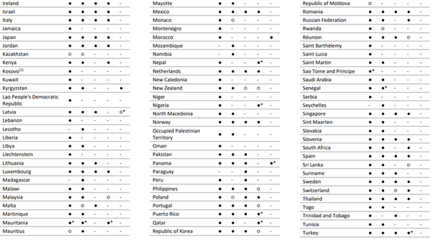 i Doğrulanmış COVID-19 vakası (Ek 1) veya endişe verici varyantların tespit edildiği ülkeler ve bölgeler listesini (Ek 2) bildirmeyen ülkeleri, bölgeleri ve alanları hariç tutar.