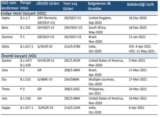 ÖZEL KONU: SARS-COV-2'NİN ÖNEMLİ VARYANTLARI (VOI'LER) VE ENDİŞE VERİCİ VARYANTLARI (VOC'LER) HAKKINDA GÜNCELLEME