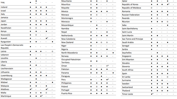 **Vurgulanan ülkeler / bölgeler / alanlar, VOC tespitlerinin hem resmi hem de resmi olmayan raporlarını içerir. Yolcular arasında VOC tespitini bildiren ülkeleri / bölgeleri / alanları (örn. Giriş noktalarında tespit edilen) veya yerel vakaları içerir. Ayrıntılar için lütfen Ek 2'ye bakınız.