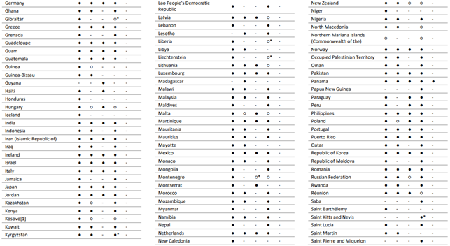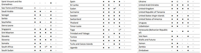 ** Yolcular arasında VOC tespitini bildiren ülkeleri / bölgeleri / alanları (örn. Giriş noktalarında tespit edilen importe vakalar) veya yerel vakaları (toplulukta tespit edilen) içerir. Endişe verici varyantın tespit edildiğini hiç bildirmemiş ülkeleri, bölgeleri ve alanları hariç tutmaktadır.