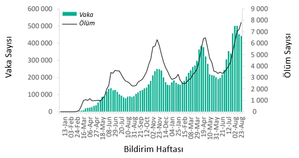 DÜNYA SAĞLIK ÖRGÜTÜ’NÜN 31.08.2021 TARİHLİ YENİ KORONAVİRÜS (COVID-19) HAFTALIK DURUM RAPORU