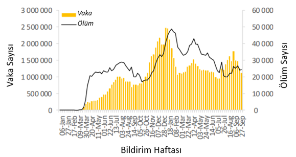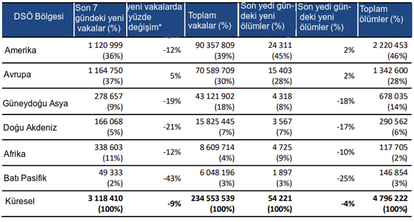 DÜNYA SAĞLIK ÖRGÜTÜ’NÜN 5.10.2021 TARİHLİ YENİ KORONAVİRÜS (COVID-19) HAFTALIK DURUM RAPORU