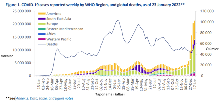 DÜNYA SAĞLIK ÖRGÜTÜ’NÜN 25.01.2022 TARİHLİ YENİ KORONAVİRÜS (COVID-19) HAFTALIK DURUM RAPORU