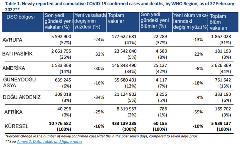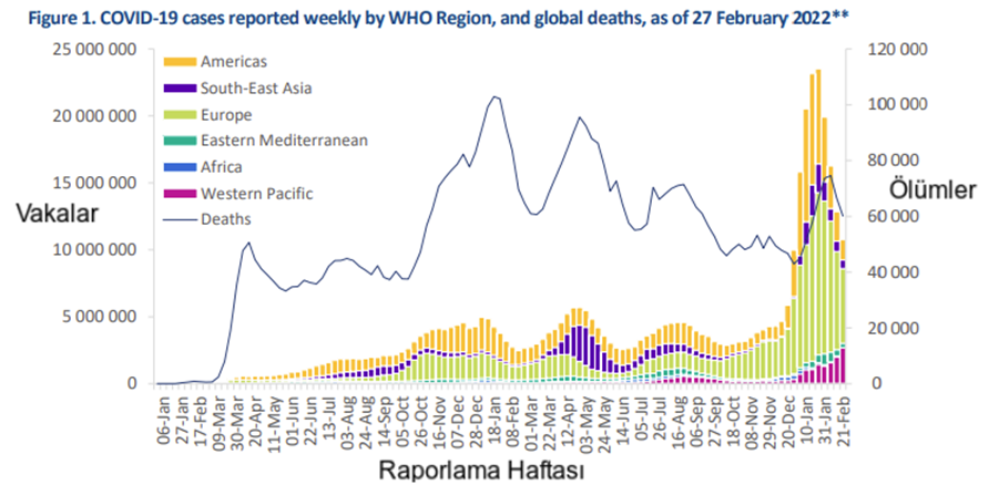 DÜNYA SAĞLIK ÖRGÜTÜ’NÜN 01.03.2022 TARİHLİ YENİ KORONAVİRÜS (COVID-19) HAFTALIK DURUM RAPORU