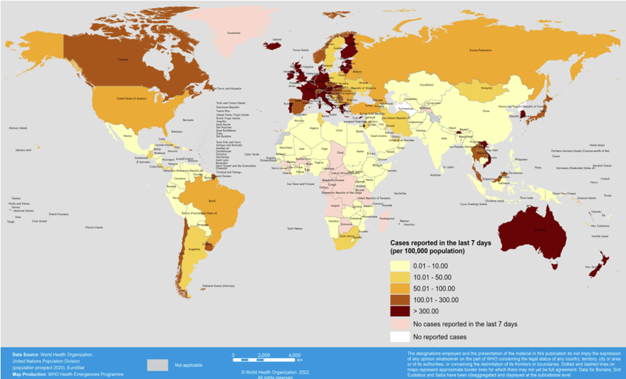 Birçok Üye Devlette 2022'nin başından bu yana gözlemlenen SARS-CoV-2 testinde bir azalma olmasına rağmen, COVID-19 pandemisi öncelikle aşılanmamış risk altındaki popülasyonlar arasında yoğun bulaşma ve yüksek ölüm seviyeleri ile devam ediyor. Oldukça bulaşıcı Omicron varyantı, rapor edildiği hemen hemen tüm ülkelerde dolaşımdaki diğer tüm varyantların yerini hızla almış ve küresel olarak baskın hale gelmiştir.