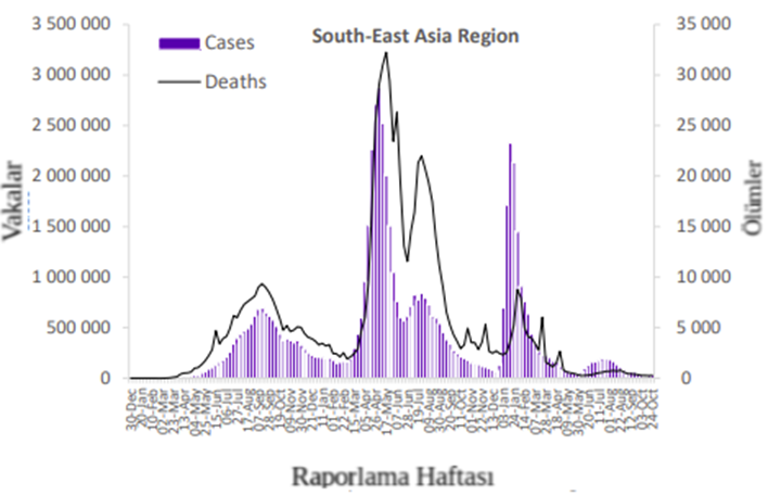Bölgede bir önceki haftaya göre %13'lük bir artışla 200'den fazla yeni haftalık ölüm vakası bildirilmiştir. En çok yeni ölüm vakası bildiren ülkeler ise Endonezya (168 yeni ölüm; 100.000'de <1 yeni ölüm; +%45), Hindistan (55 yeni ölüm; 100.000'de <1 yeni ölüm; -%17) ve Tayland (33 yeni ölümler; <100.000 başına 1 yeni ölüm; -%18) olmuştur.