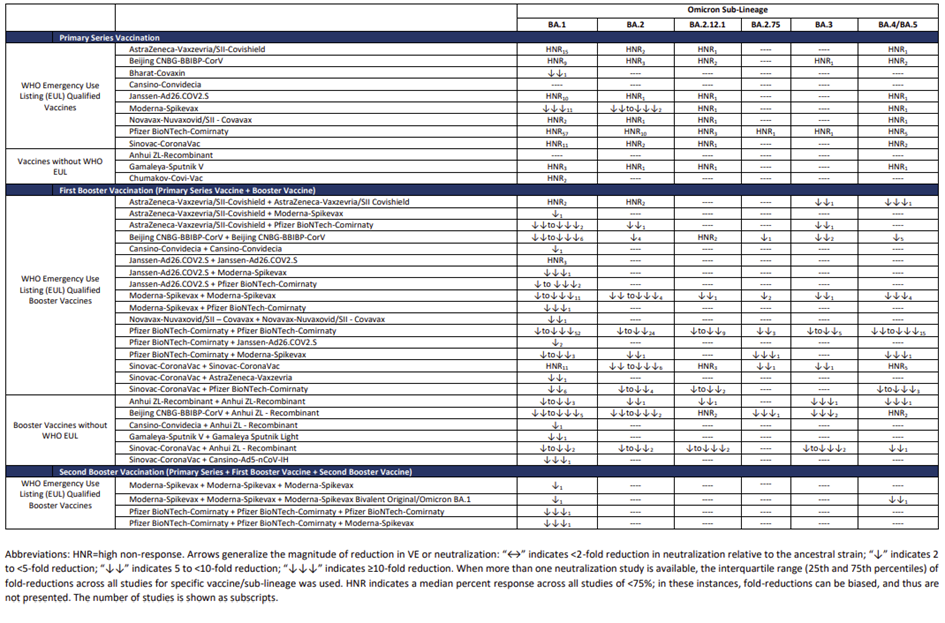 Ek 3. Omicron Endişe Verici Varyantına karşı birincil serileri ve destekleyici aşı performansını değerlendiren nötralizasyon çalışmalarının sonuçlarının özeti (veriler 20 Kasım 2022 itibarıyla güncellenmiştir)