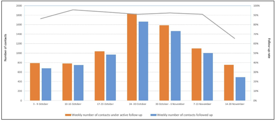 Salgının başlangıcından bu yana 4652 temaslı kaydedildi ve bunlardan 3599'u (%78) 21 günlük takip süresini tamamlamıştır.