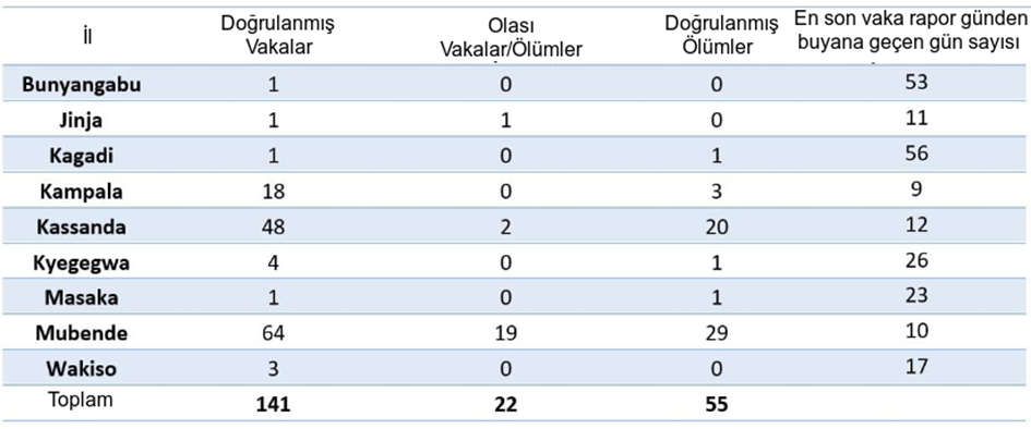 Kaynak: Uganda'da Ebola Virüsü Hastalığı Durum Raporu - 57