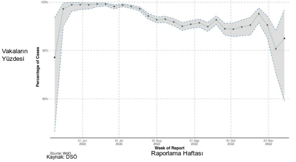 - 21 Kasım ile başlayan haftada, Doğu Akdeniz Bölgesi art arda beş hafta vaka bilmezken sonrasında altı yeni vaka bildirmiştir. Bunlar, 1 Ekim ile 25 Kasım 2022 arasında teşhis edilen vakaların retrospektif raporlarıdır.