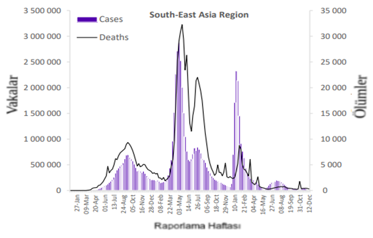 Bölgede haftalık yeni ölüm vakası sayısı bir önceki haftaya göre %20 azalmış olup 309 yeni ölüm bildirilmiştir. En yüksek yeni ölüm vakası sayıları Endonezya (174 yeni ölüm; 100.000'de <1 yeni ölüm; -%29), Tayland (113 yeni ölüm; 100.000'de <1 yeni ölüm; +%6) ve Hindistan'dan ( 14 yeni ölüm; 100.000'de <1 yeni ölüm; -%53) rapor edilmiştir.