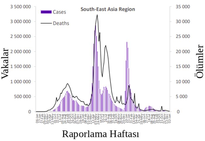 Bölgede haftalık yeni ölüm vakası sayısı bir önceki haftaya göre %19 azalmış olup 139 yeni ölüm vakası bildirilmiştir. En yüksek yeni ölüm vakası sayıları Endonezya (64 yeni ölüm; 100.000'de <1 yeni ölüm; -%22), Tayland (58 yeni ölüm; 100.000'de <1 yeni ölüm; -%23) ve Hindistan'dan ( 15 yeni ölüm; 100.000'de <1 yeni ölüm; +%25) rapor edilmiştir.