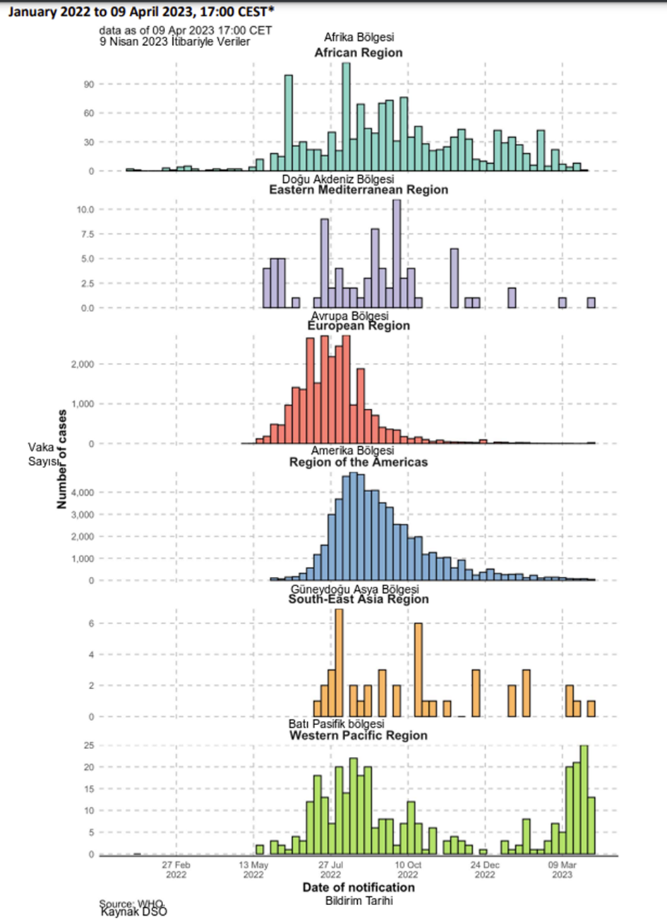 Ek 2: 1 Ocak 2022 ve 10 Nisan 2023 tarihleri arasında ve saat 17:00 (CEST) itibariyle DSÖ Bölgelerince ve ülkeler tarafından doğrulanmış mpox vakaları