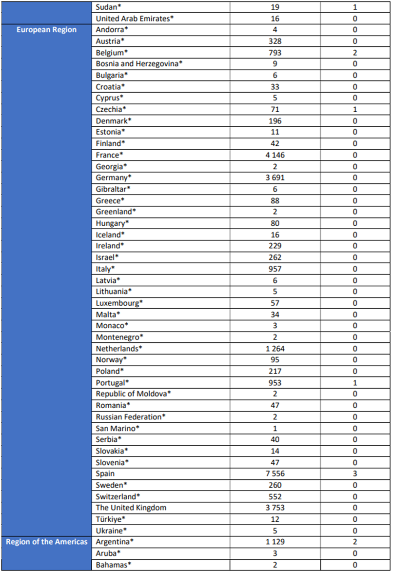 Ek 2: 1 Ocak 2022 ve 5 Haziran 2023 tarihleri arasında ve saat 17:00 (CEST) itibariyle DSÖ Bölgelerince ve ülkeler tarafından doğrulanmış mpox vakaları