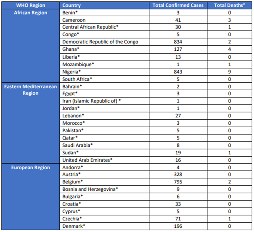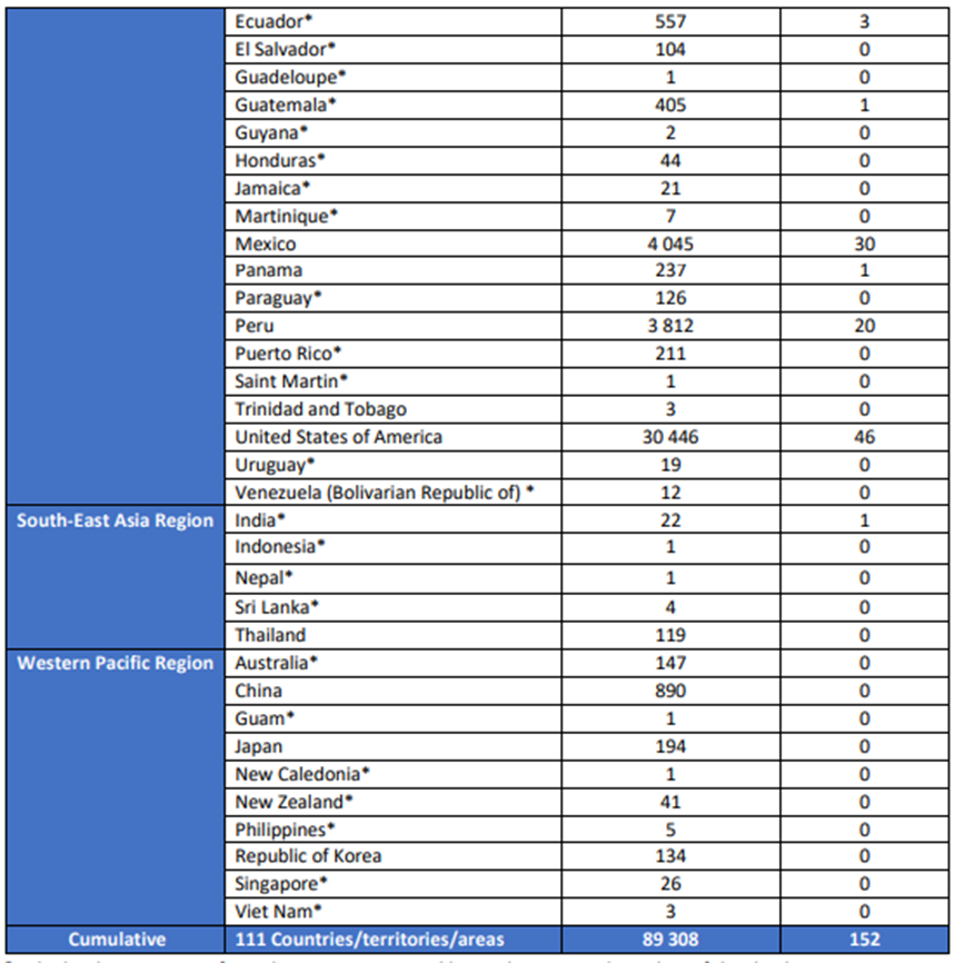 - Batı Pasifik Bölgesi'nde, Çin'de sürekli topluluk bulaşması nedeniyle vakalarda önemli bir artış gözlemlenmiştir.