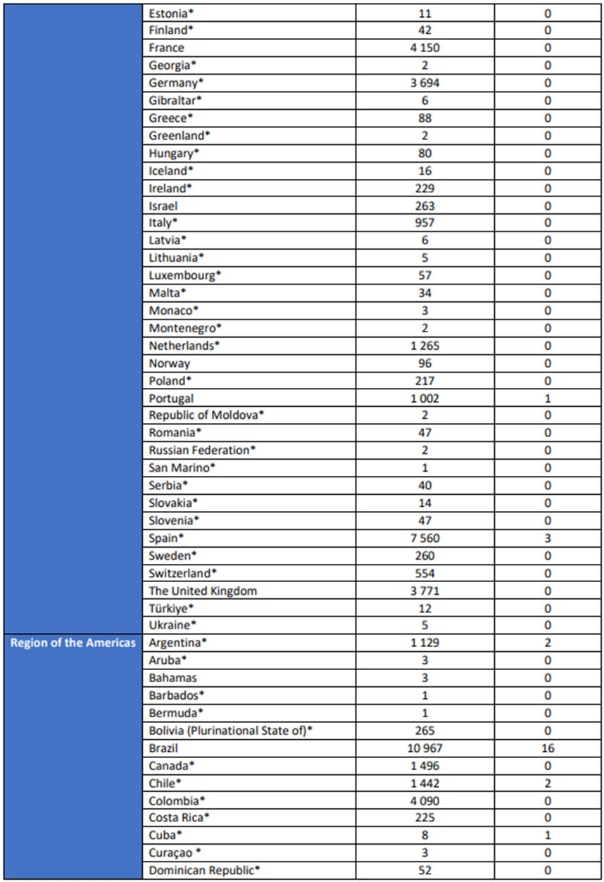 Ek 2: 1 Ocak 2022 ve 9 Ağustos 2023 tarihleri arasında ve saat 17:00 (CEST) itibariyle DSÖ Bölgelerince ve ülkeler tarafından doğrulanmış mpox vakaları
