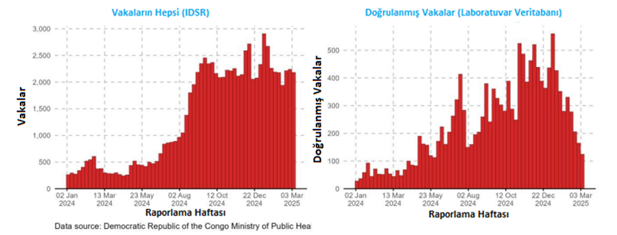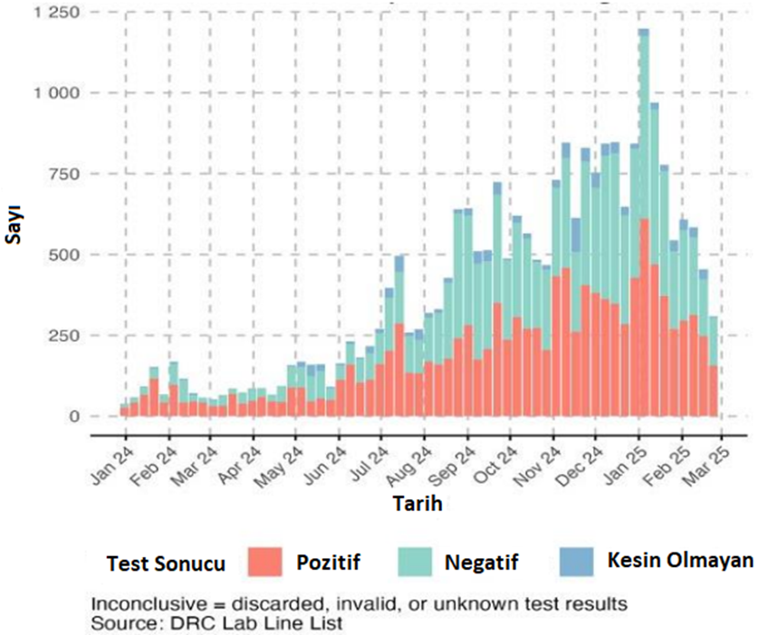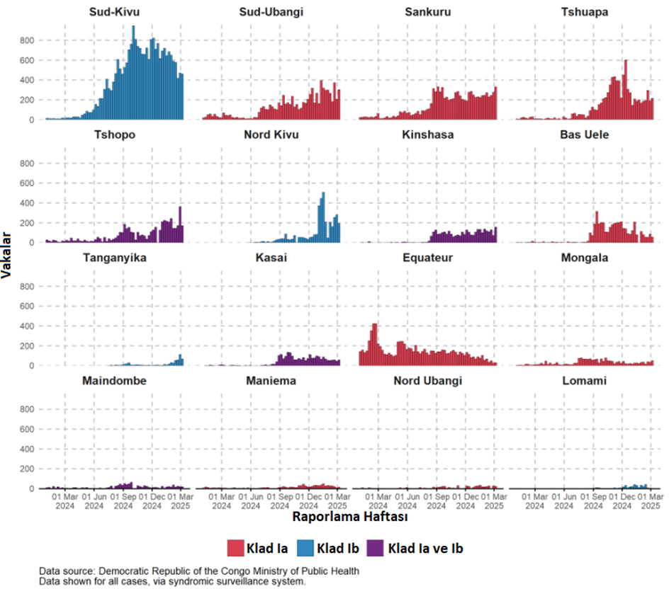 ⁴ Farklı raporlama tarihleri nedeniyle bu rapor ile DSÖ Afrika Bölge Ofisi, Bölgesel Mpox Bülteni arasında epidemiyolojik verilerde hafif tutarsızlıklar beklenmektedir. Bölgesel Mpox Bülteni aşağıdaki bağlantıda mevcuttur: Mpox (maymun çiçeği) | DSÖ | Afrika Bölge Ofisi