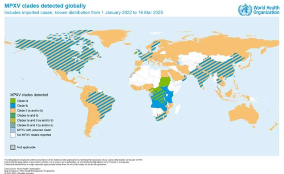 - 17 Mart 2025 itibariyle klad I MPXV nedeniyle ithal edilen mpox vakalarına ilişkin güncellemeler;