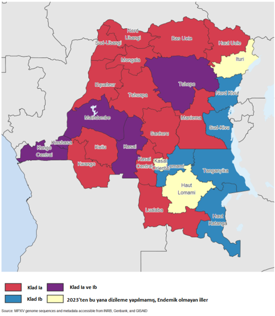 - Kongo Cumhuriyeti ve Kongo Demokratik Cumhuriyeti'nde bildirilen vakaların klad Ia ve klad Ib MPXV'nin bir karışımı olduğu bilinmektedir.