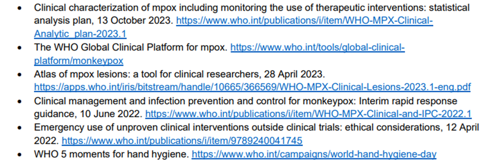 En son mpox güncellemeleri ayrıca DSÖ mpox gözetim raporunda da bulunabilir.