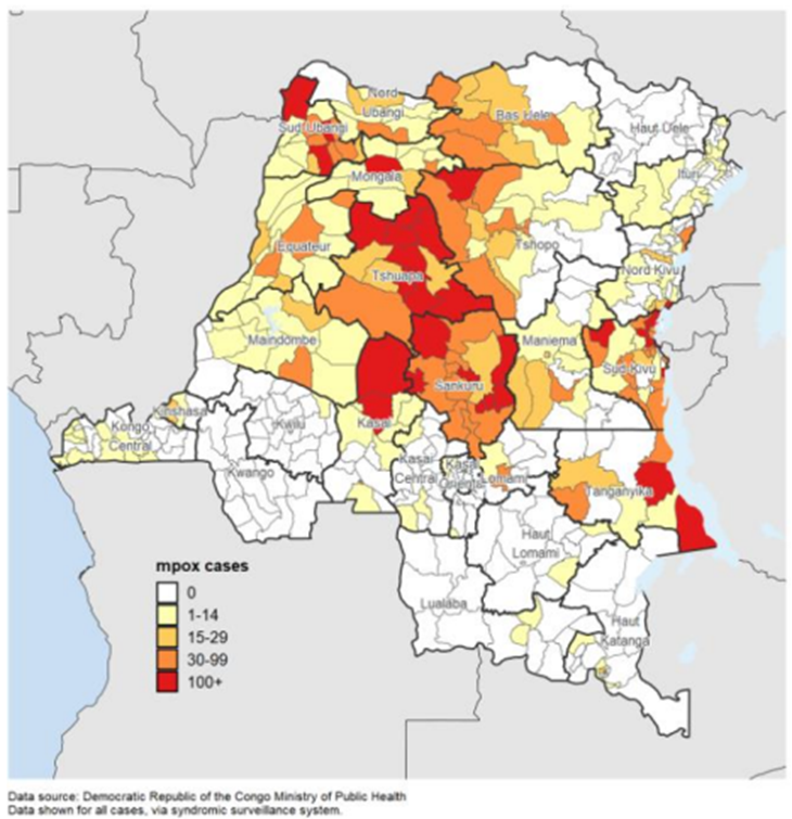 2 Kongo Demokratik Cumhuriyeti için belirtilen ulusal düzeydeki vaka sayıları, mpox için ulusal laboratuvar veritabanına dayanmaktadır.