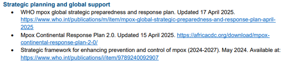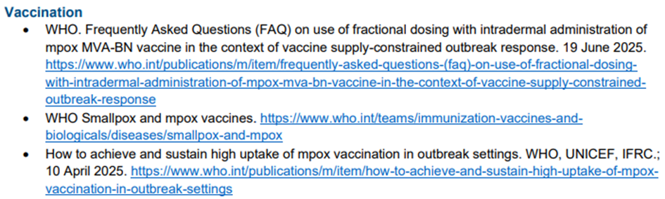 Bu bölümde 20 Ağustos 2025 itibariyle DSÖ küresel mpox yanıtı ile ilgili güncellemeler sunulmaktadır.