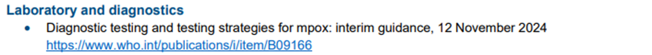 - DSÖ ve Afrika CDC'nin Afrika'daki mpox müdahalesi için koordinasyonu, Kıtasal Olay Yönetimi Destek Ekibi aracılığıyla devam etmektedir.